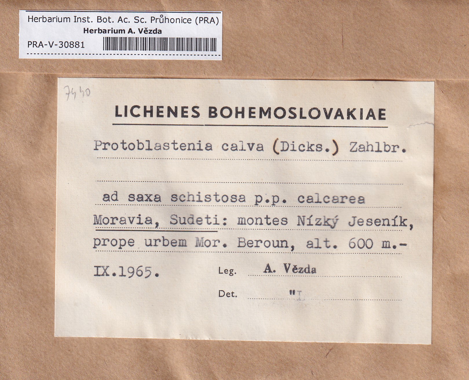 - Deposited in parcel no.96 Fulgensia, Protoblastenia