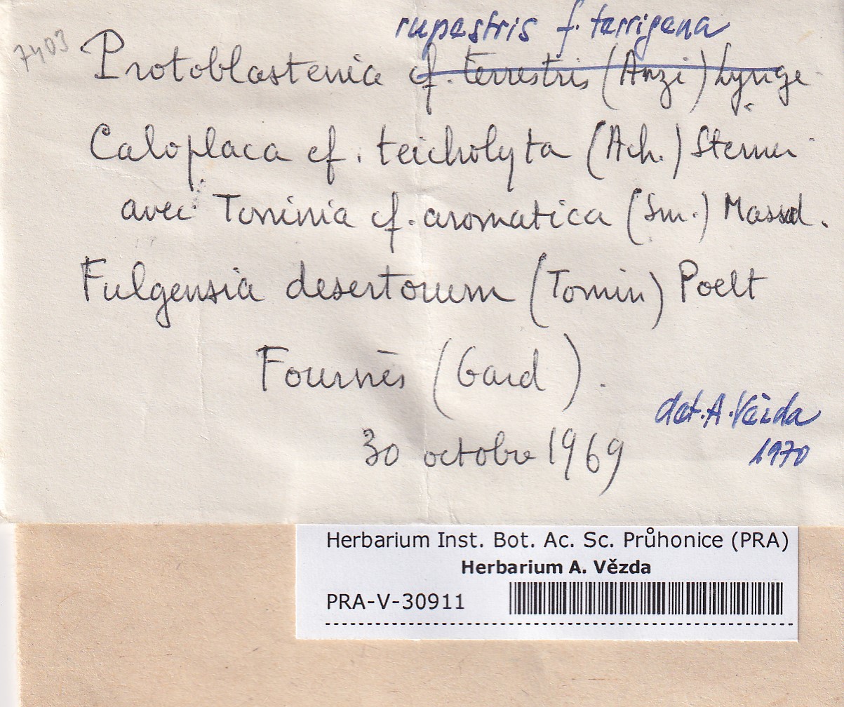 - Deposited in parcel no.96 Fulgensia, Protoblastenia