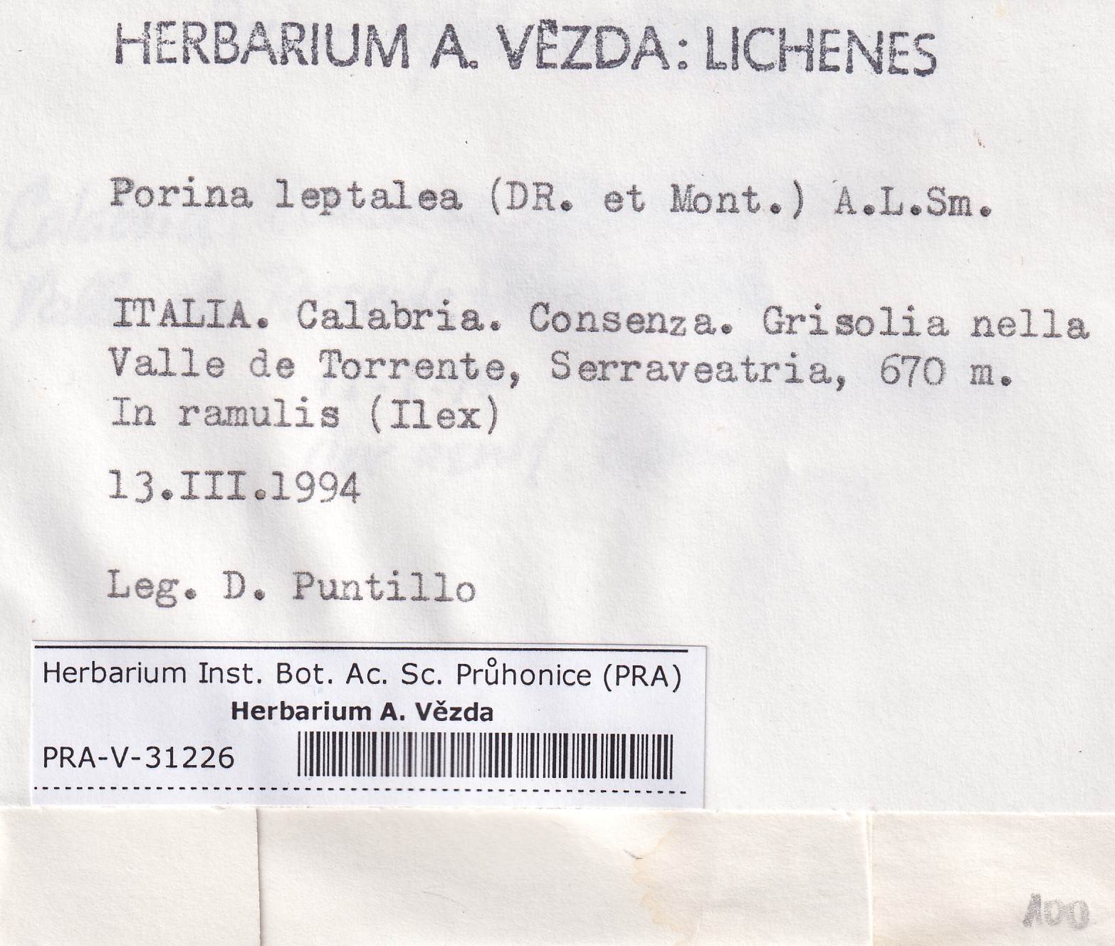 - Notes - specimen (NOT printed on the scheda)