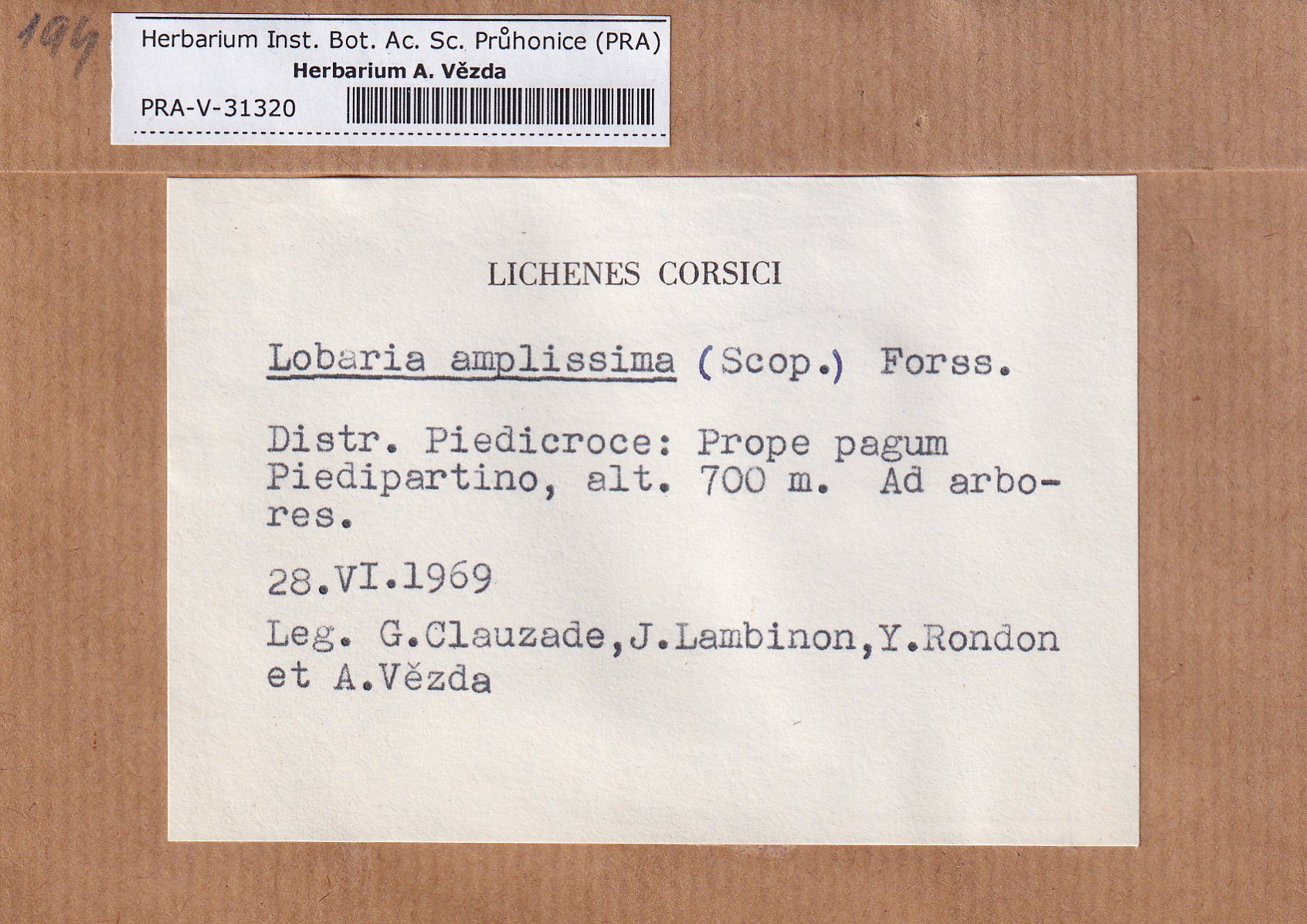 - Deposited in parcel no.100a Lobaria A-Y