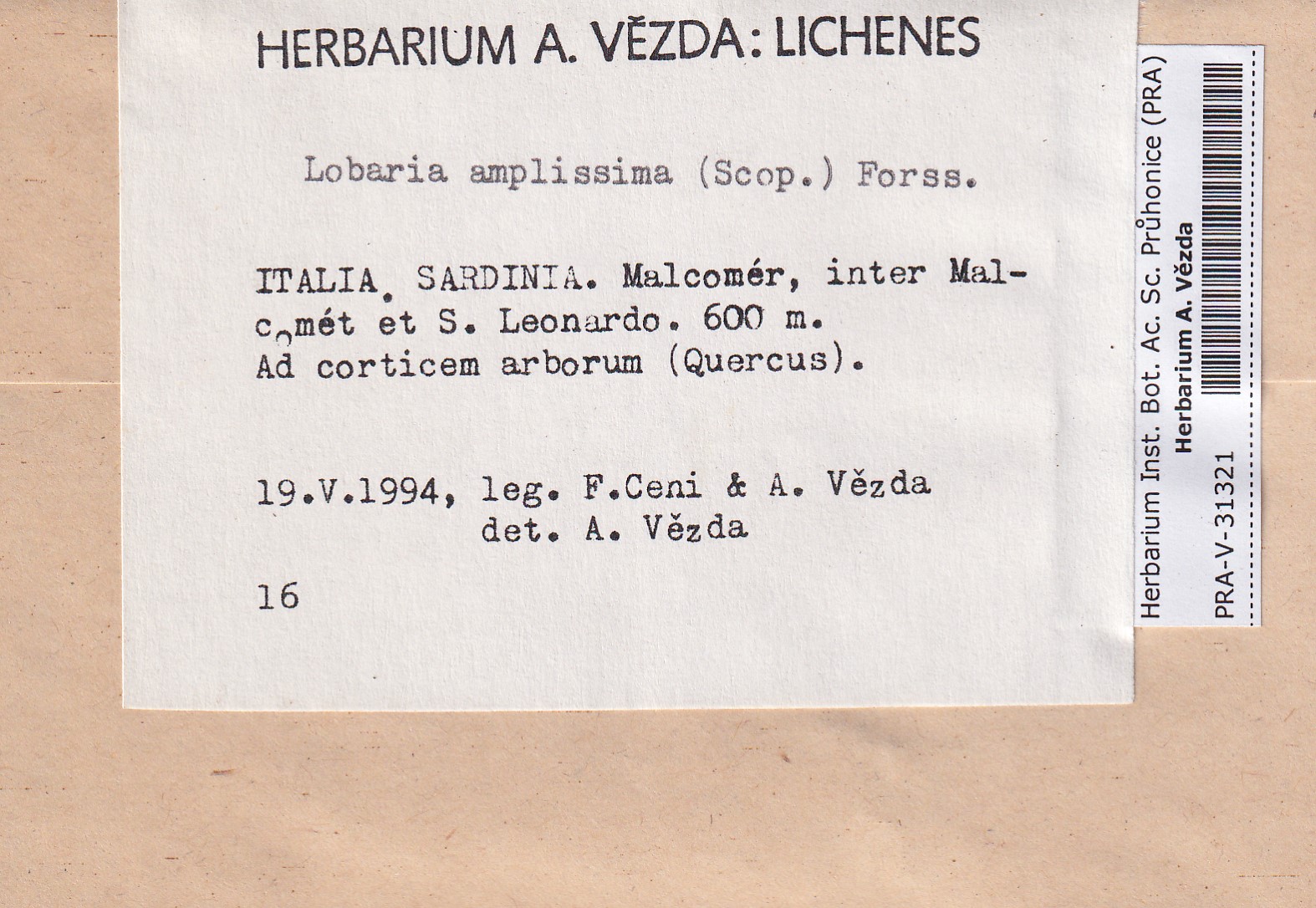 - Deposited in parcel no.100a Lobaria A-Y