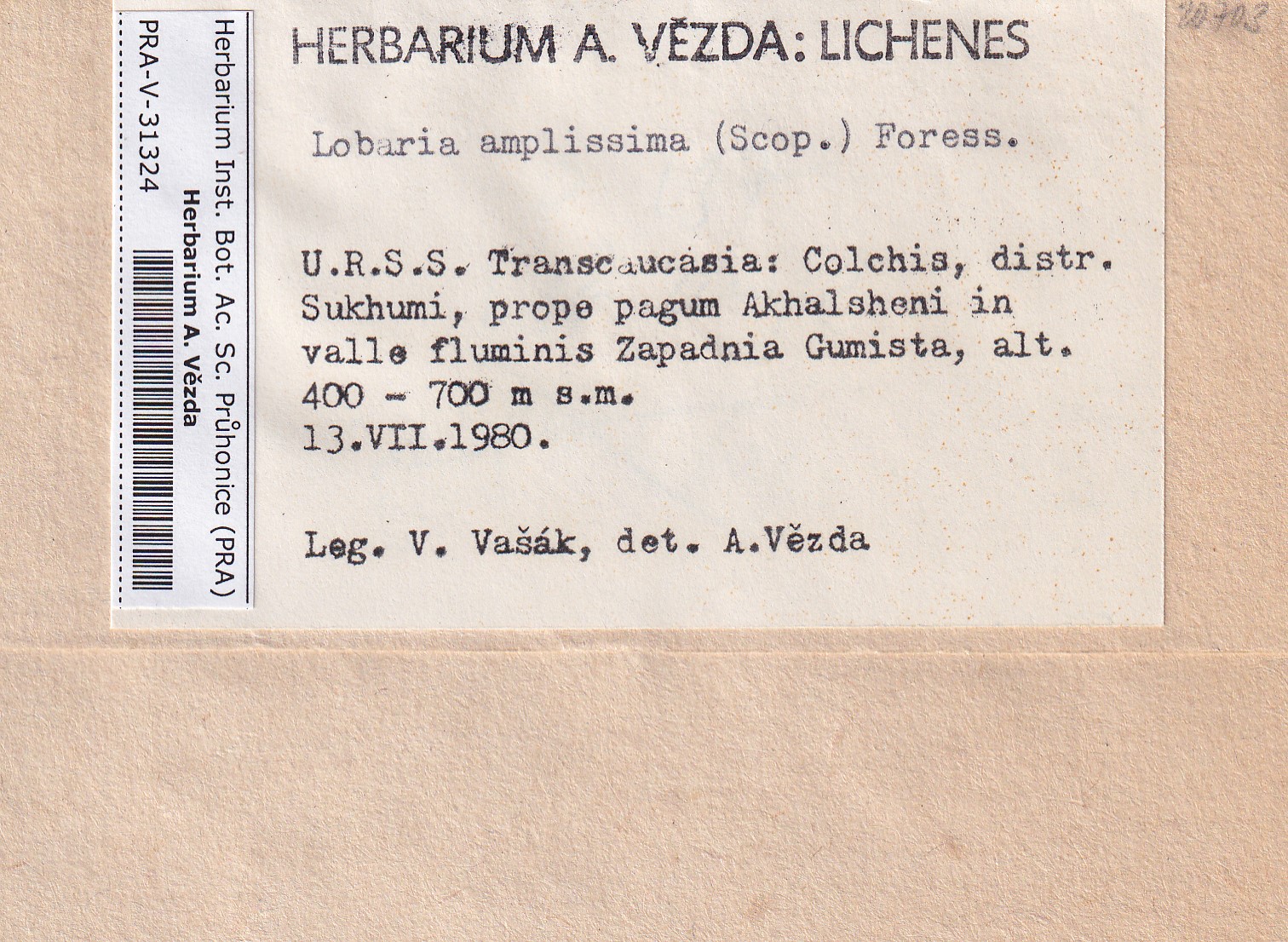 - Deposited in parcel no.100a Lobaria A-Y