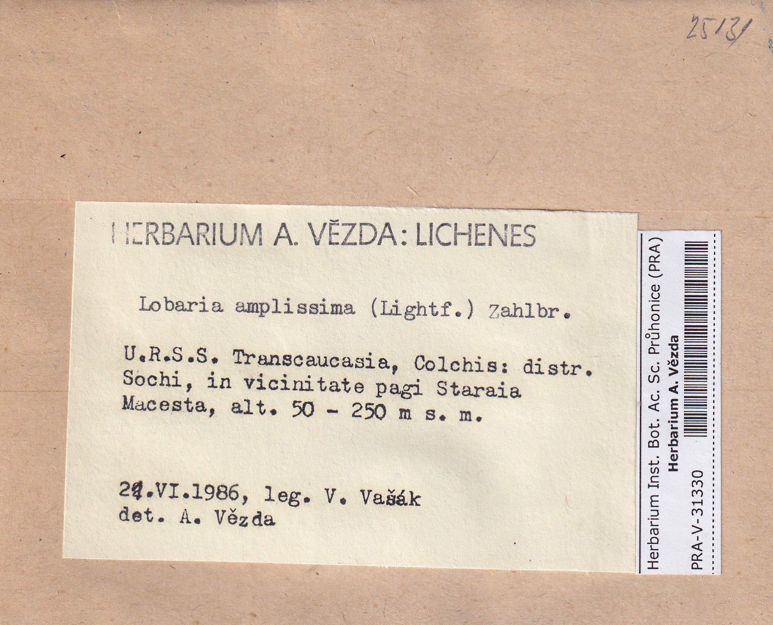 - Deposited in parcel no.100a Lobaria A-Y