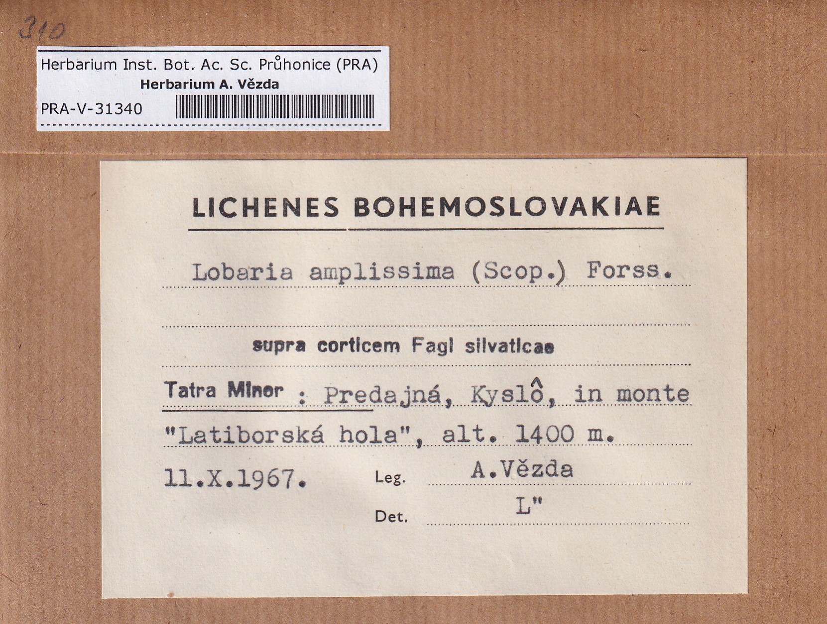 - Deposited in parcel no.100a Lobaria A-Y
