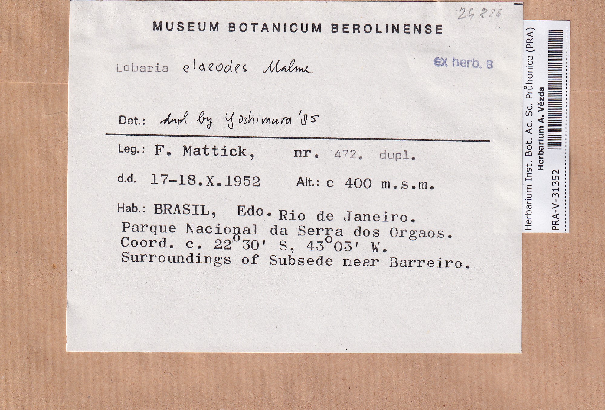 - Deposited in parcel no.100a Lobaria A-Y