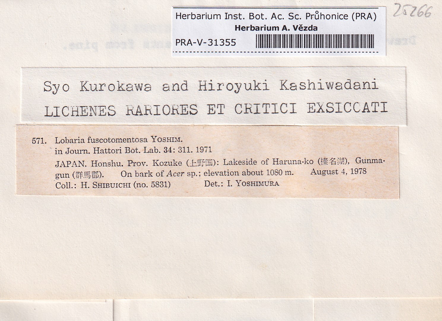 - Kurokawa & Kashiwadani, Lich. Rar. Crit. Exs.
