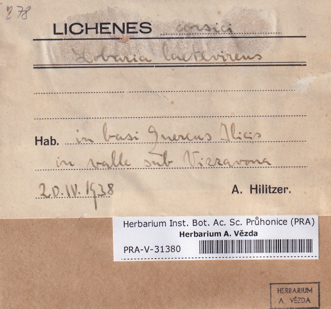 - Deposited in parcel no.100a Lobaria A-Y
