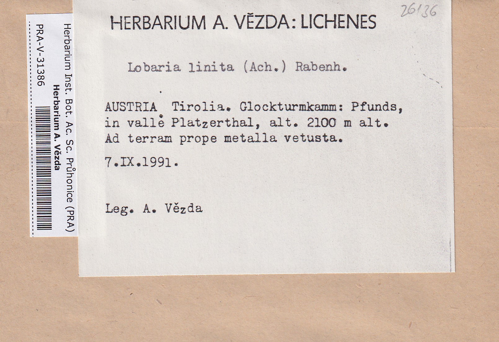 - Deposited in parcel no.100a Lobaria A-Y