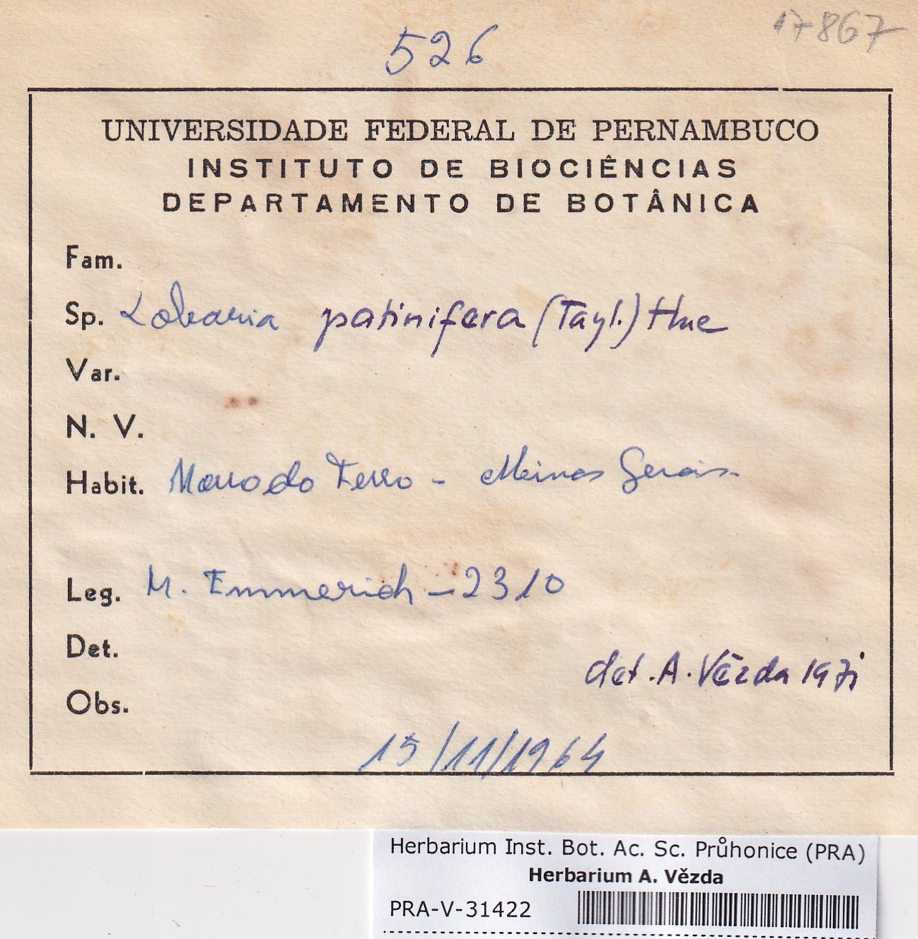 - Deposited in parcel no.100a Lobaria A-Y