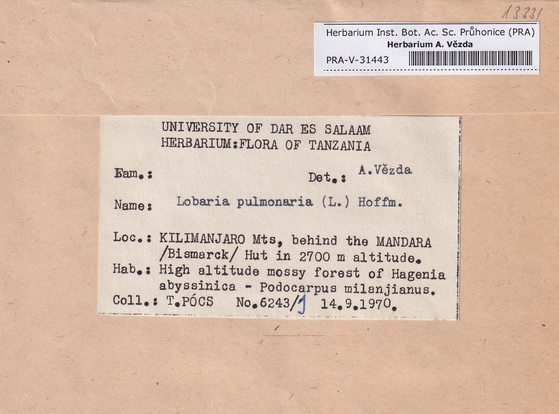 - Deposited in parcel no.100a Lobaria A-Y