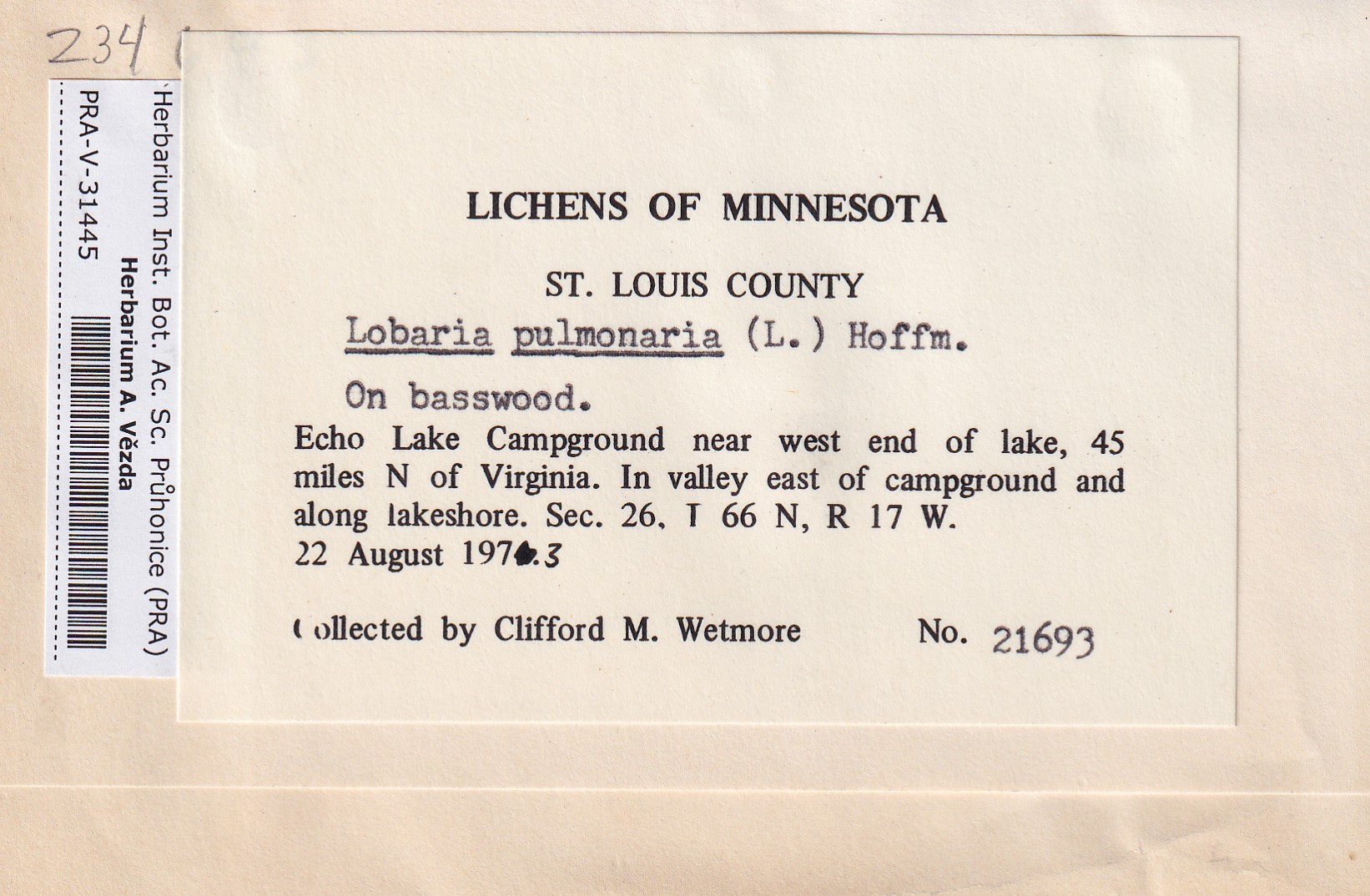 - Deposited in parcel no.100a Lobaria A-Y