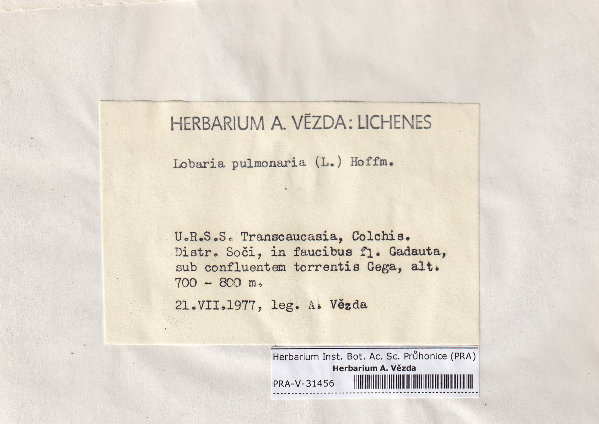 - Deposited in parcel no.100a Lobaria A-Y
