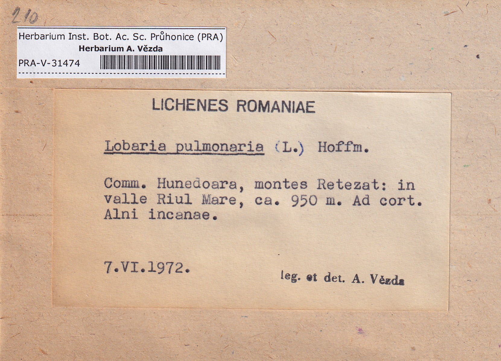 - Deposited in parcel no.100a Lobaria A-Y