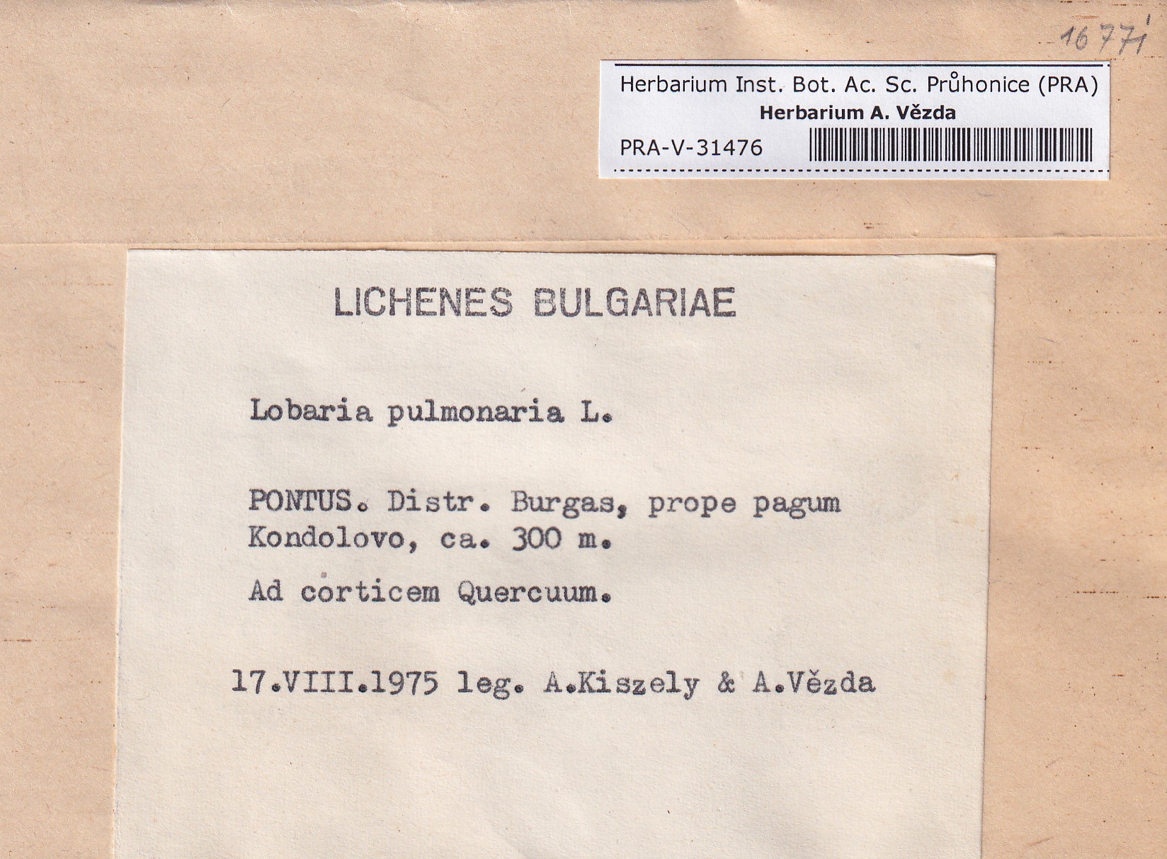 - Deposited in parcel no.100a Lobaria A-Y