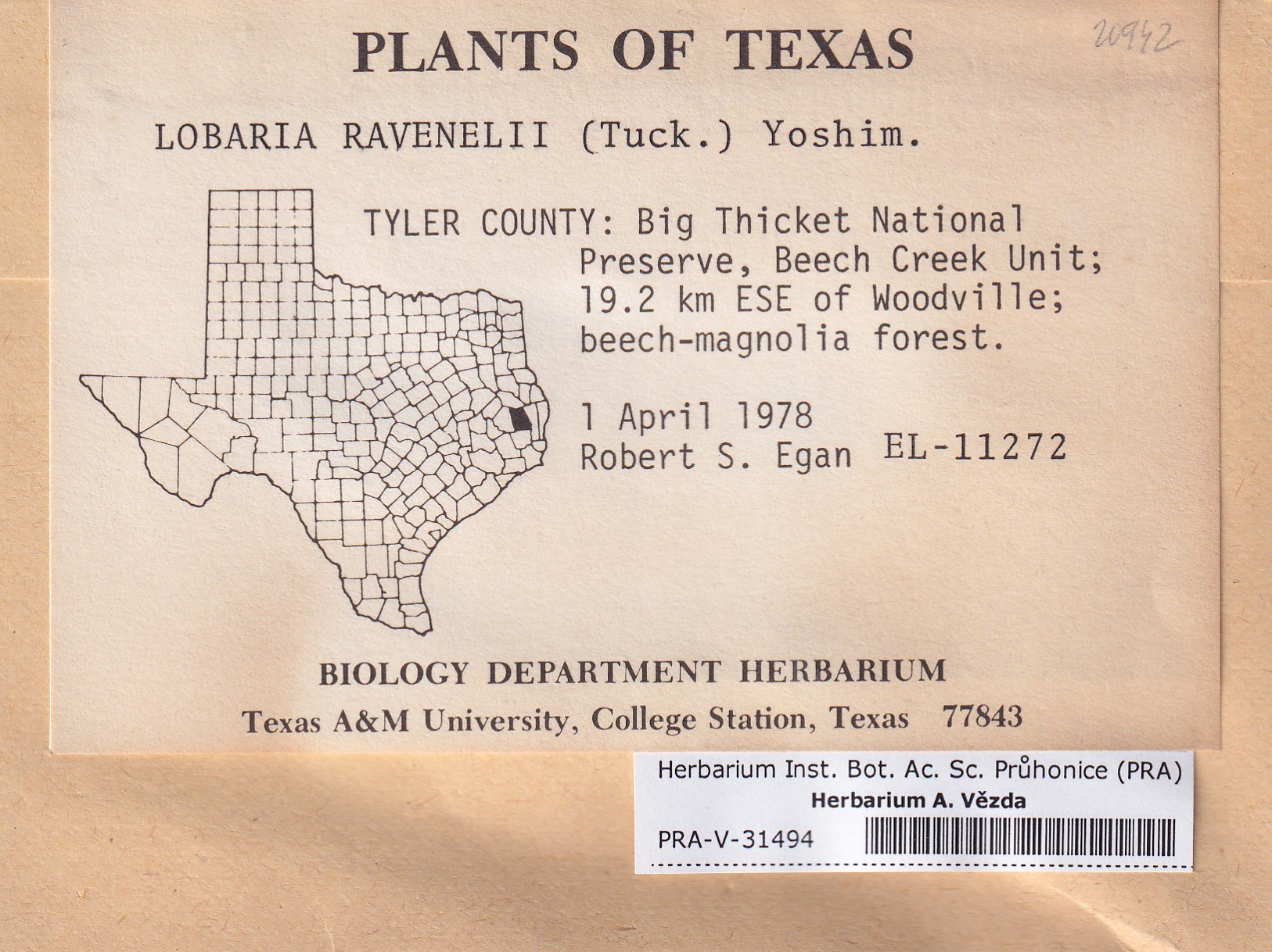 - Deposited in parcel no.100a Lobaria A-Y