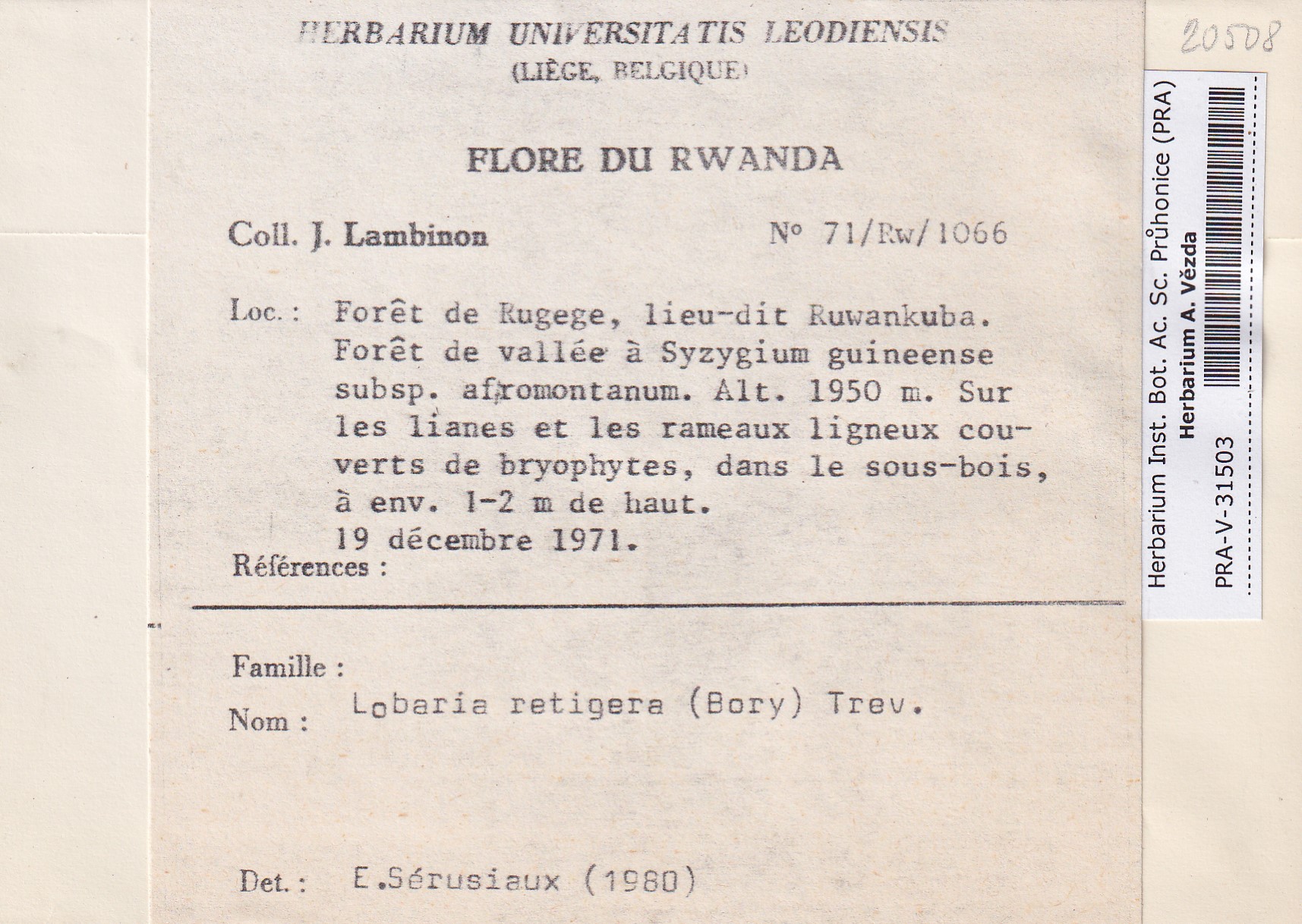 - Deposited in parcel no.100a Lobaria A-Y