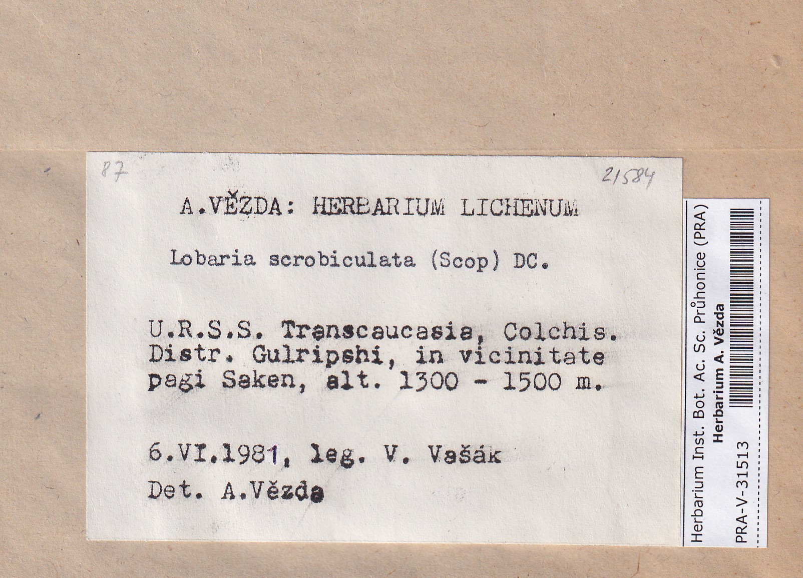 - Deposited in parcel no.100a Lobaria A-Y