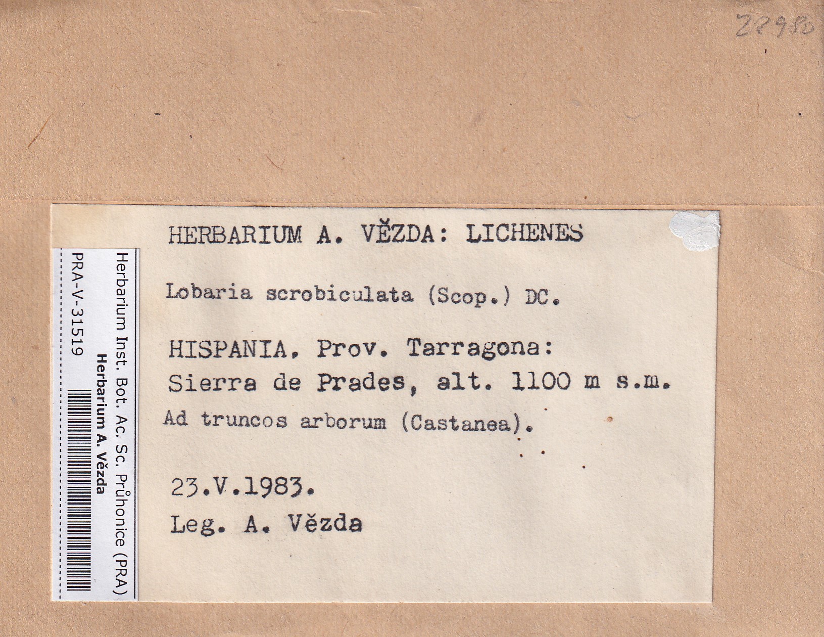 - Deposited in parcel no.100a Lobaria A-Y