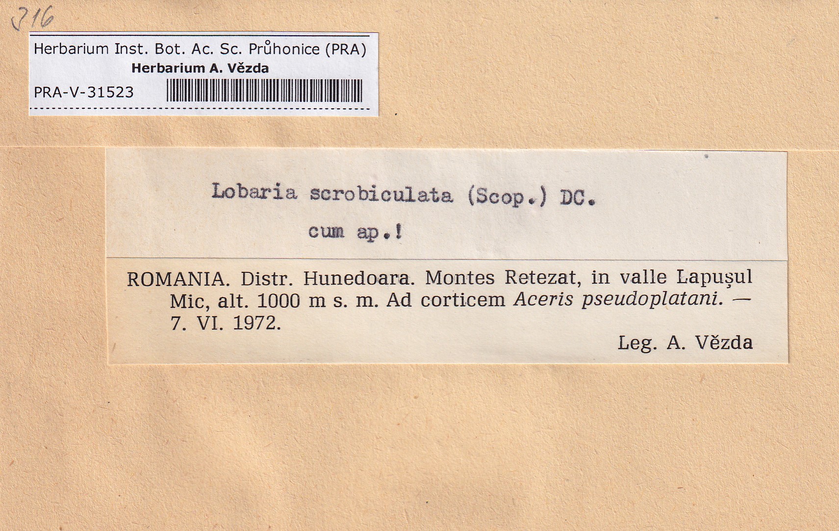 - Deposited in parcel no.100a Lobaria A-Y
