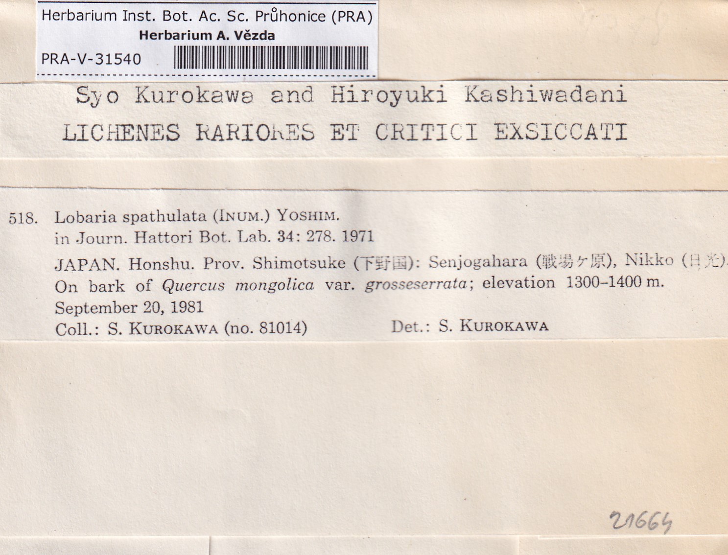 - Kurokawa & Kashiwadani, Lich. Rar. Crit. Exs.