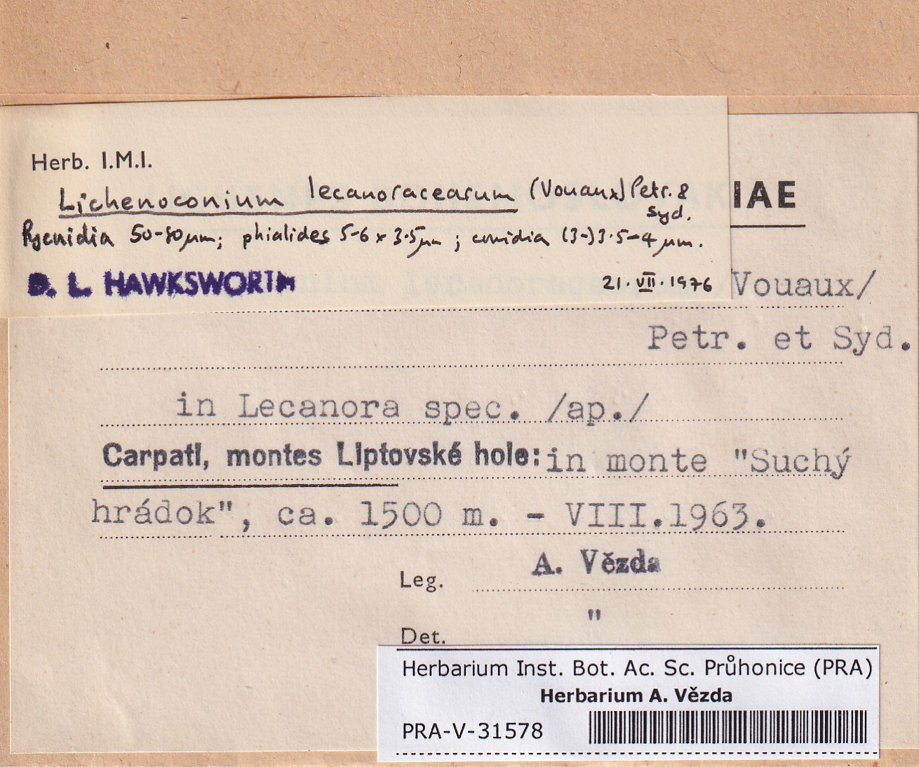 - Deposited in parcel no.101 Fungi lichenicoli