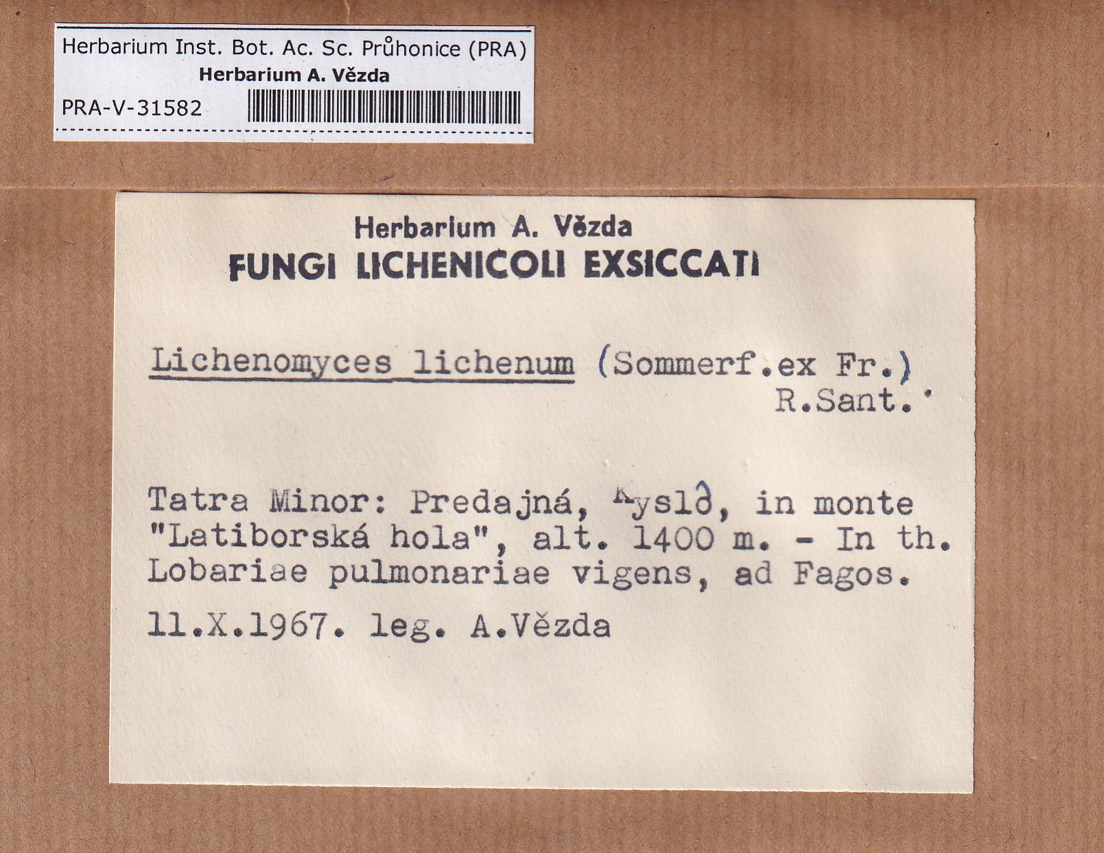 - Deposited in parcel no.101 Fungi lichenicoli