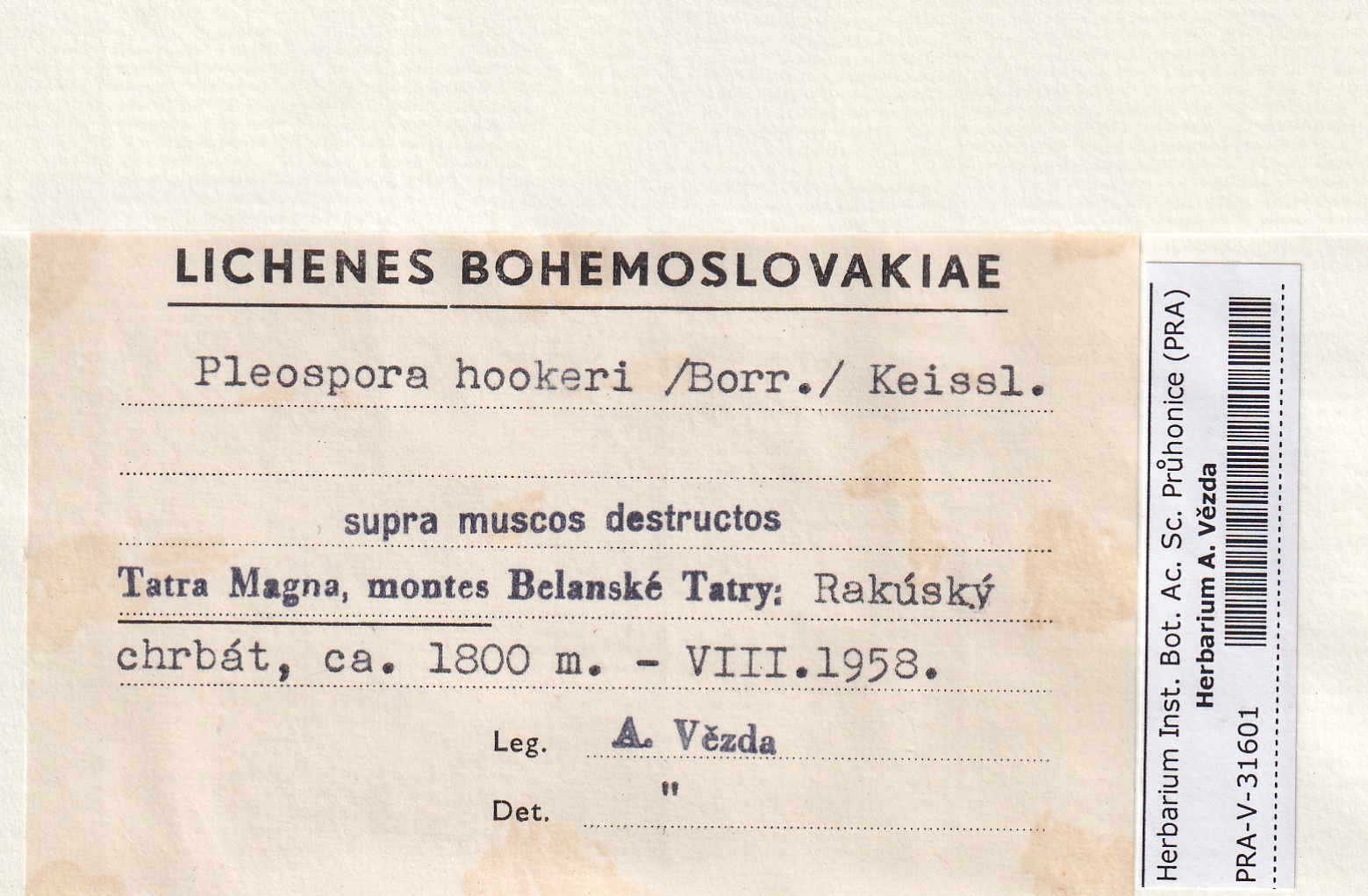 - Deposited in parcel no.101 Fungi lichenicoli
