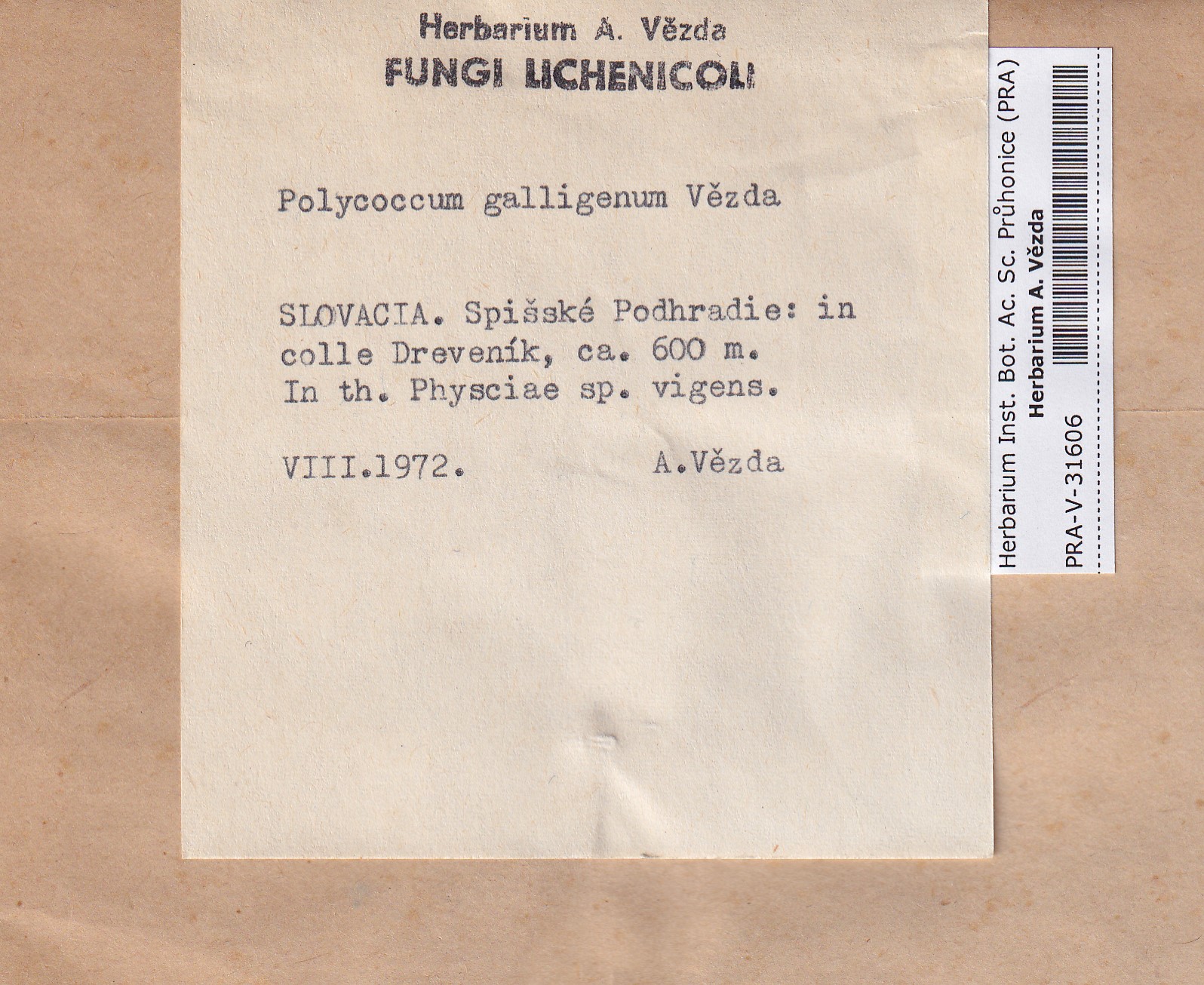 - Deposited in parcel no.101 Fungi lichenicoli