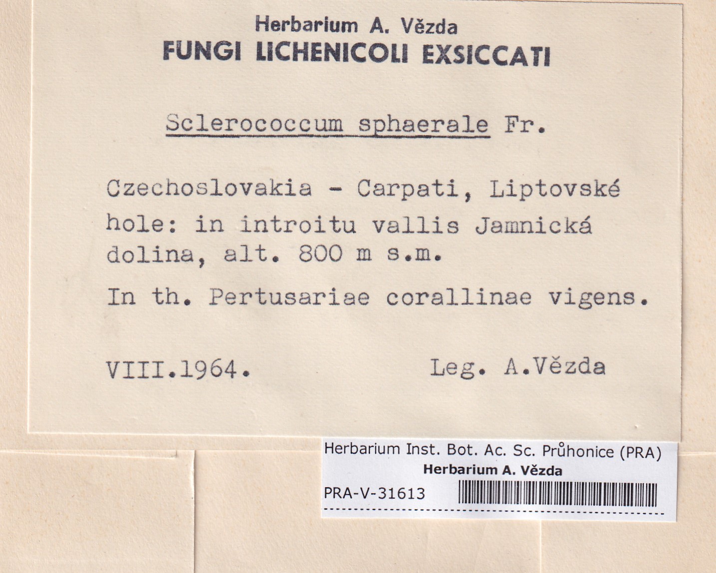 - Deposited in parcel no.101 Fungi lichenicoli