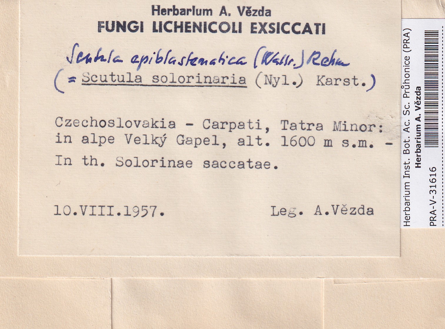 - Deposited in parcel no.101 Fungi lichenicoli