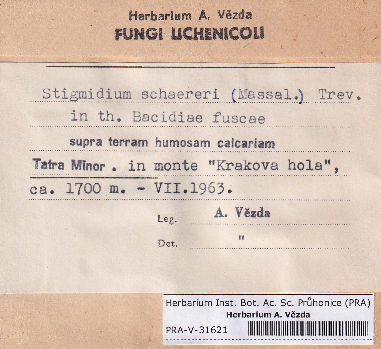 - Deposited in parcel no.101 Fungi lichenicoli