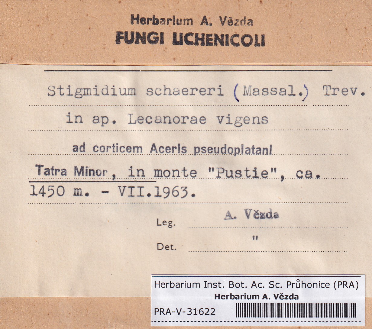 - Deposited in parcel no.101 Fungi lichenicoli