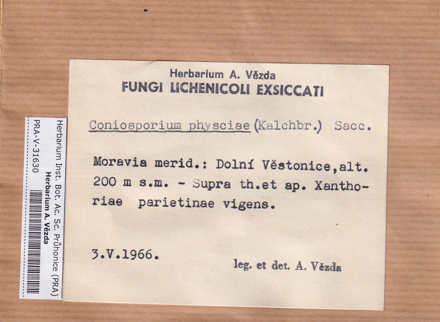 - Deposited in parcel no.101 Fungi lichenicoli
