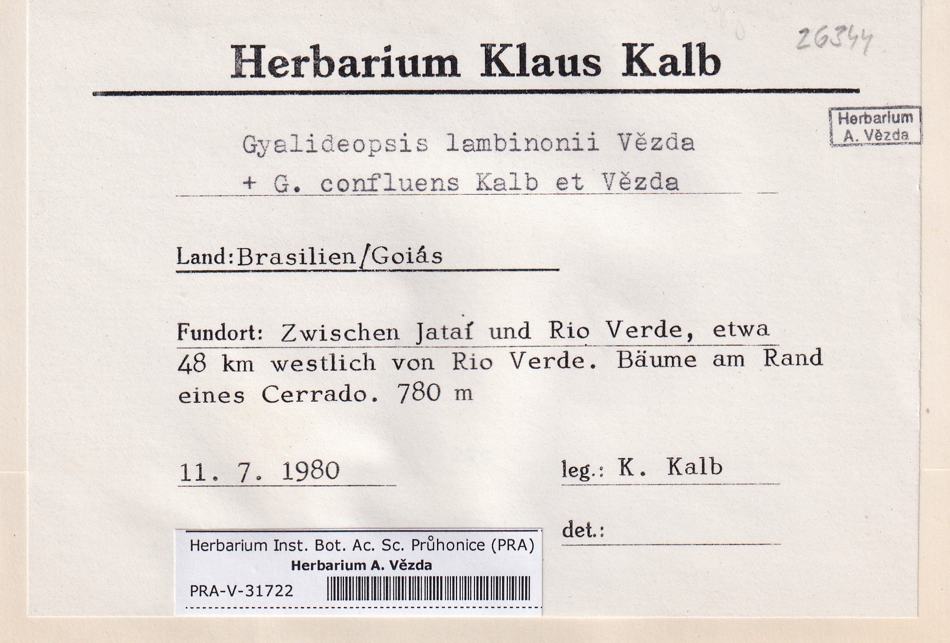- Mixed sheets: Gyalideopsis lambinonii and Gyalideopsis confluens