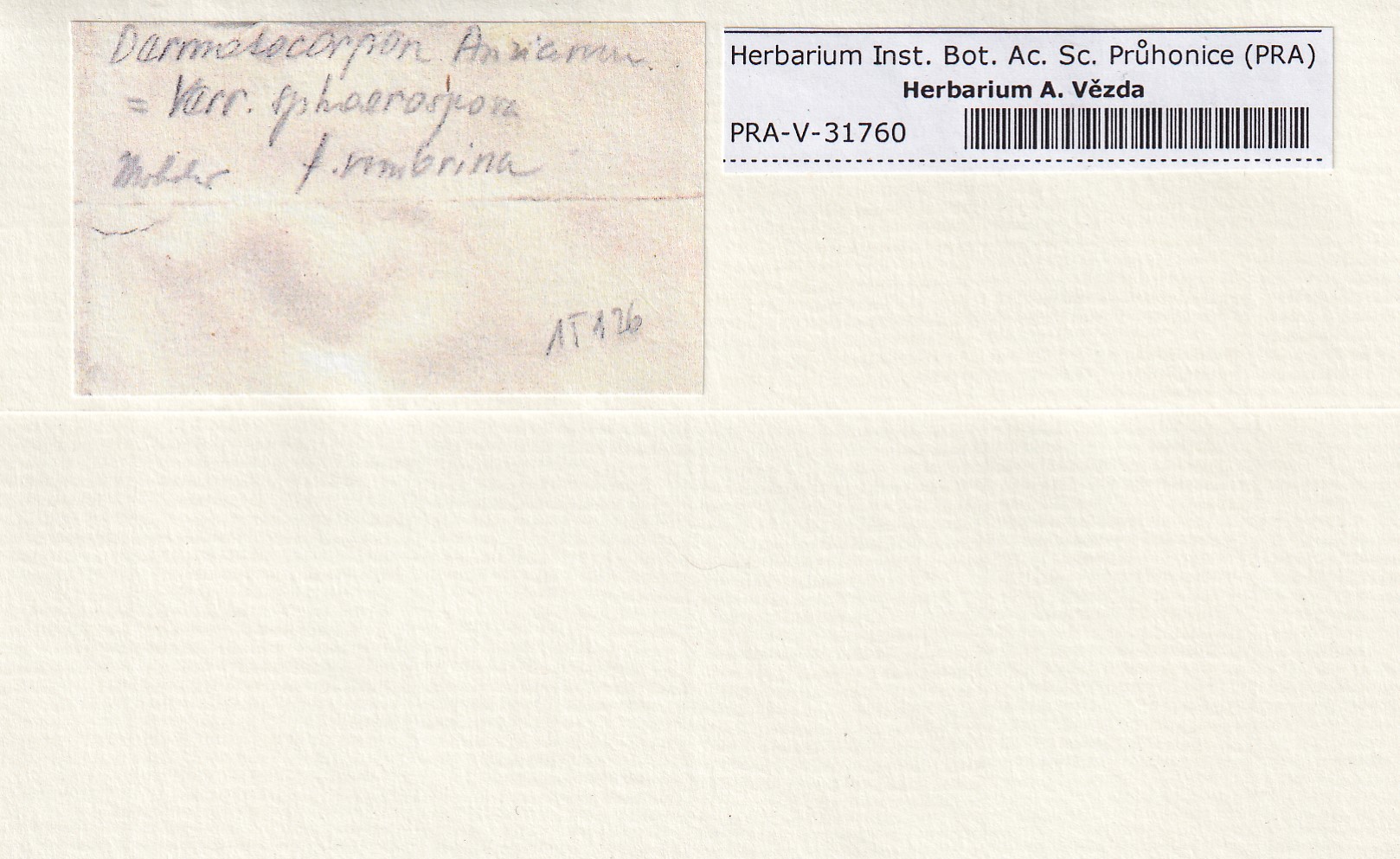 - Deposited in parcel no. 116 Dermatocarpon