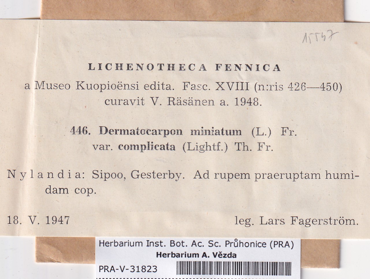 - Deposited in parcel no. 116 Dermatocarpon