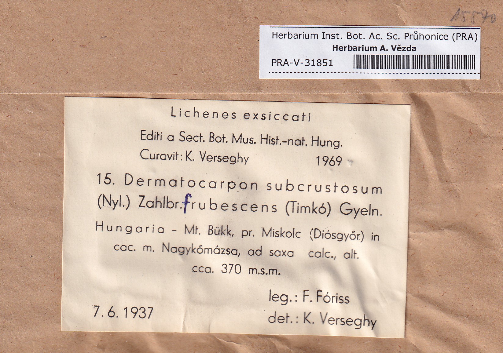 - Deposited in parcel no. 116 Dermatocarpon