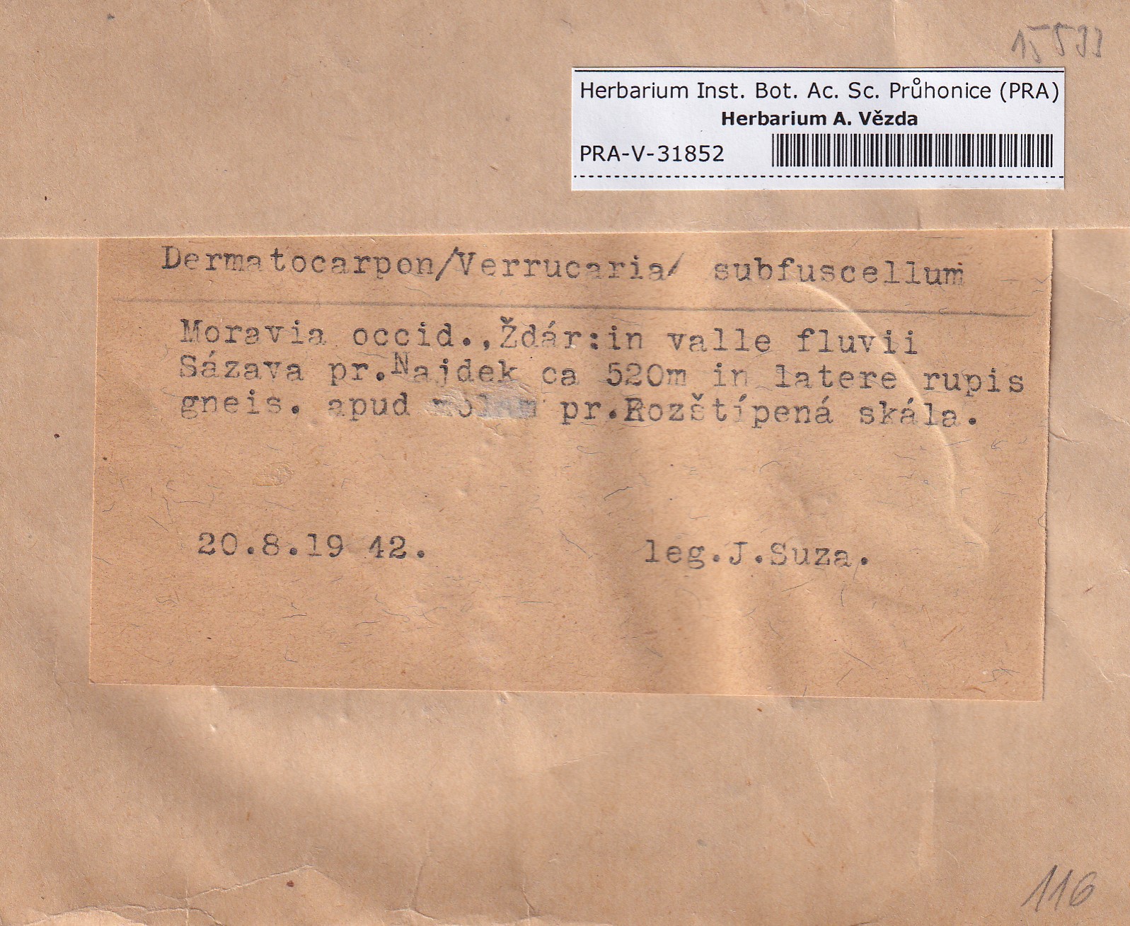 - Deposited in parcel no. 116 Dermatocarpon