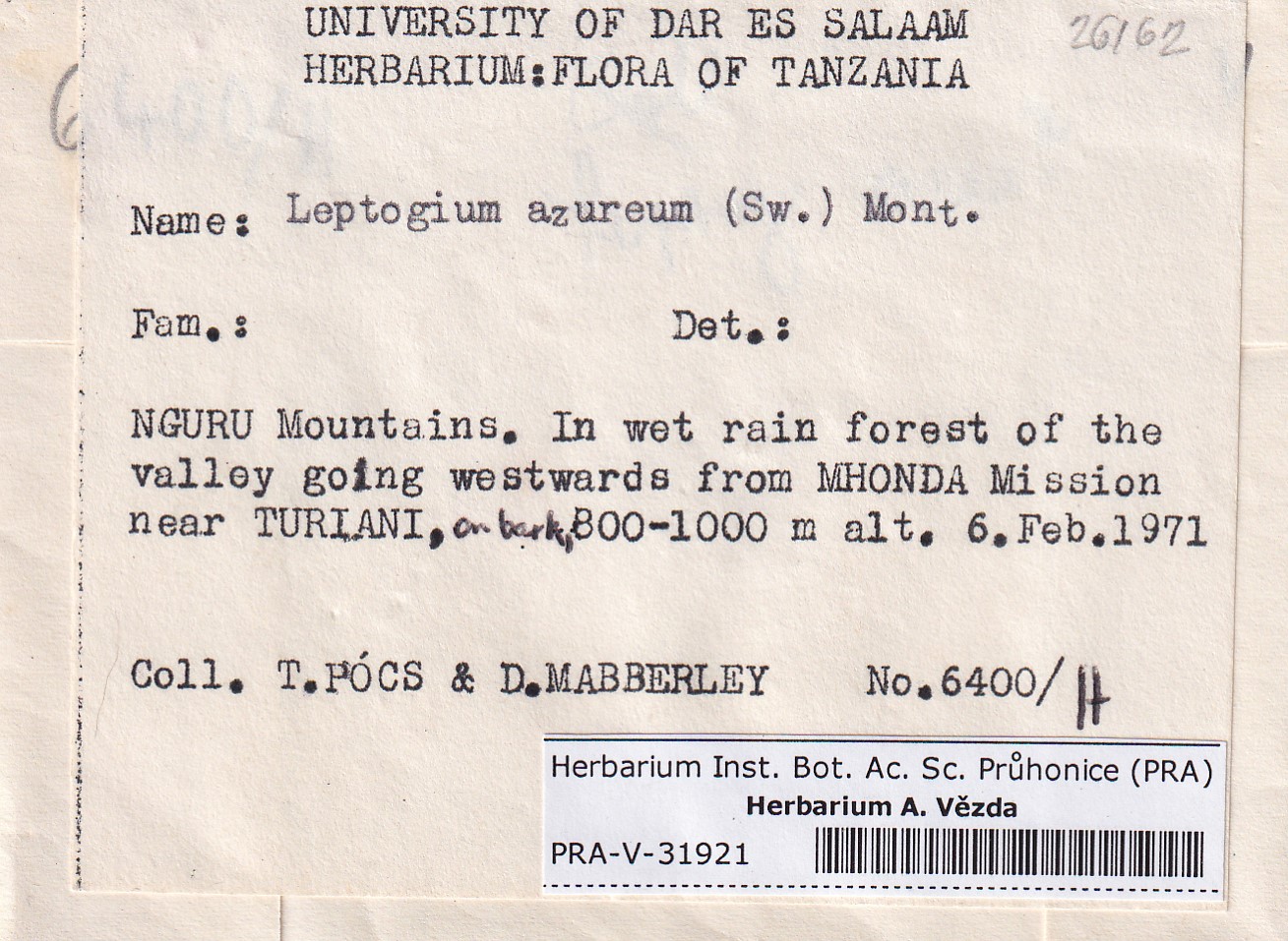 - Deposited in parcel no. 117 Leptogium A-N