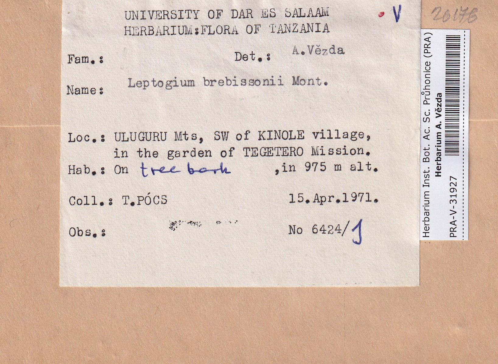 - Deposited in parcel no. 117 Leptogium A-N