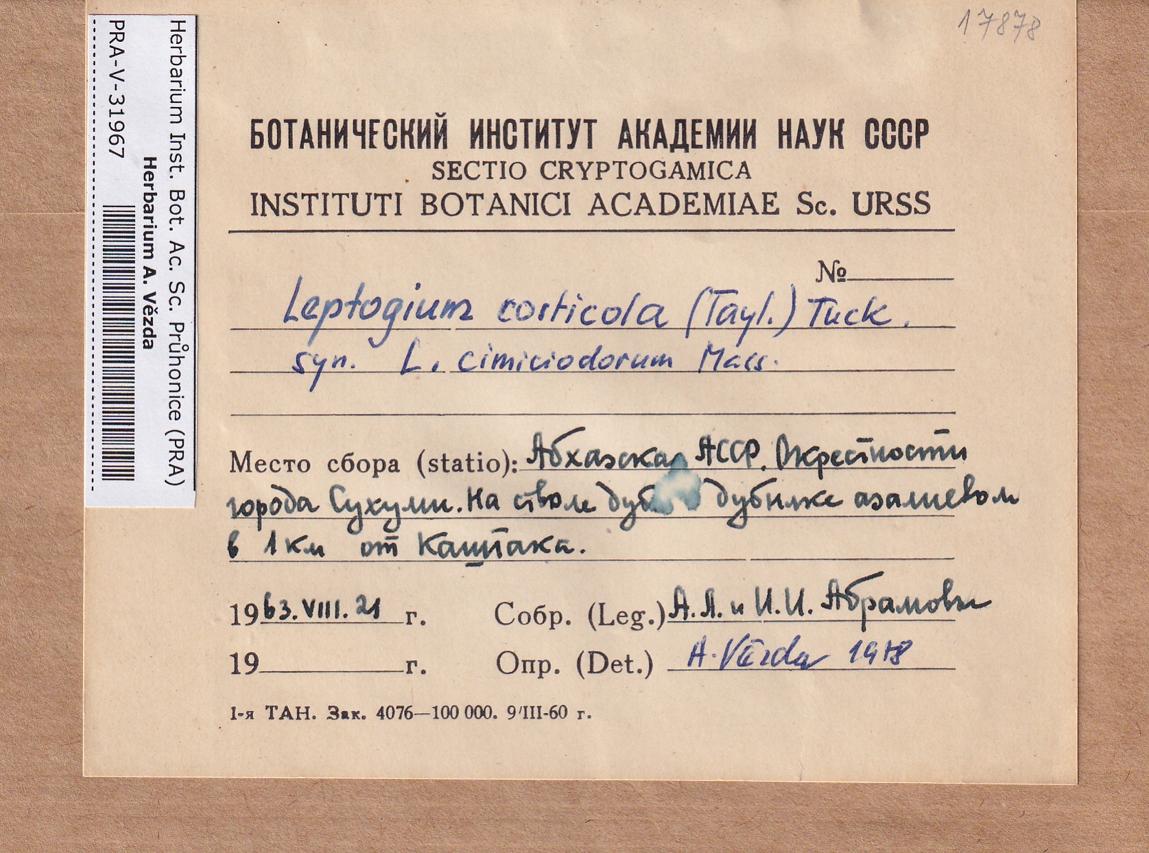 - Deposited in parcel no. 117 Leptogium A-N