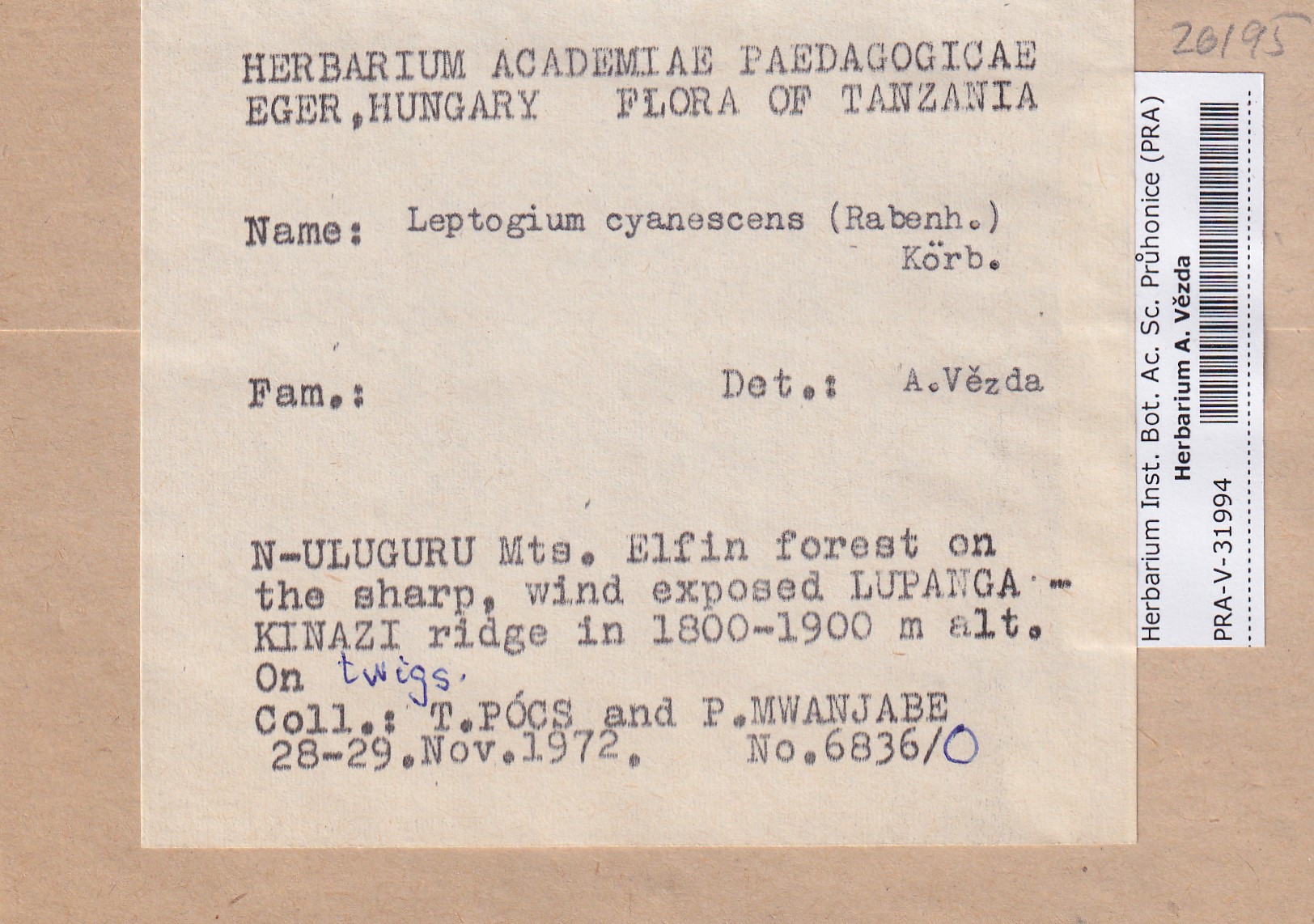 - Deposited in parcel no. 117 Leptogium A-N