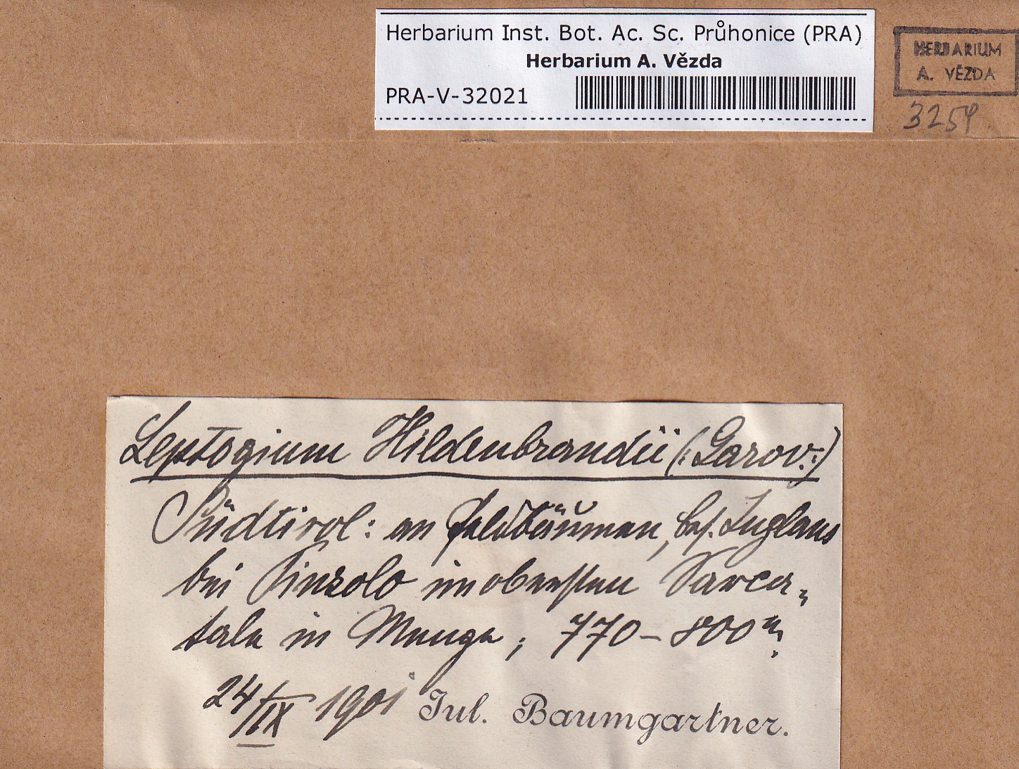 - Deposited in parcel no. 117 Leptogium A-N