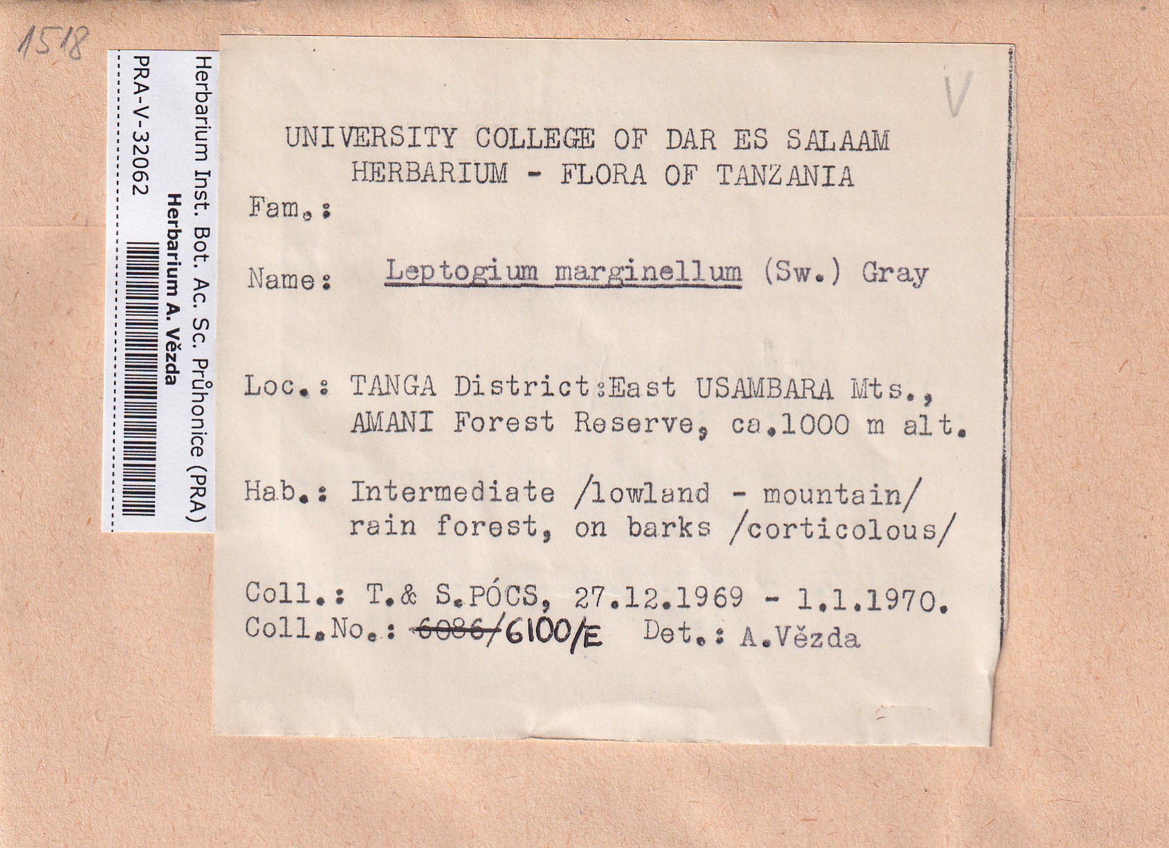 - Deposited in parcel no. 117 Leptogium A-N