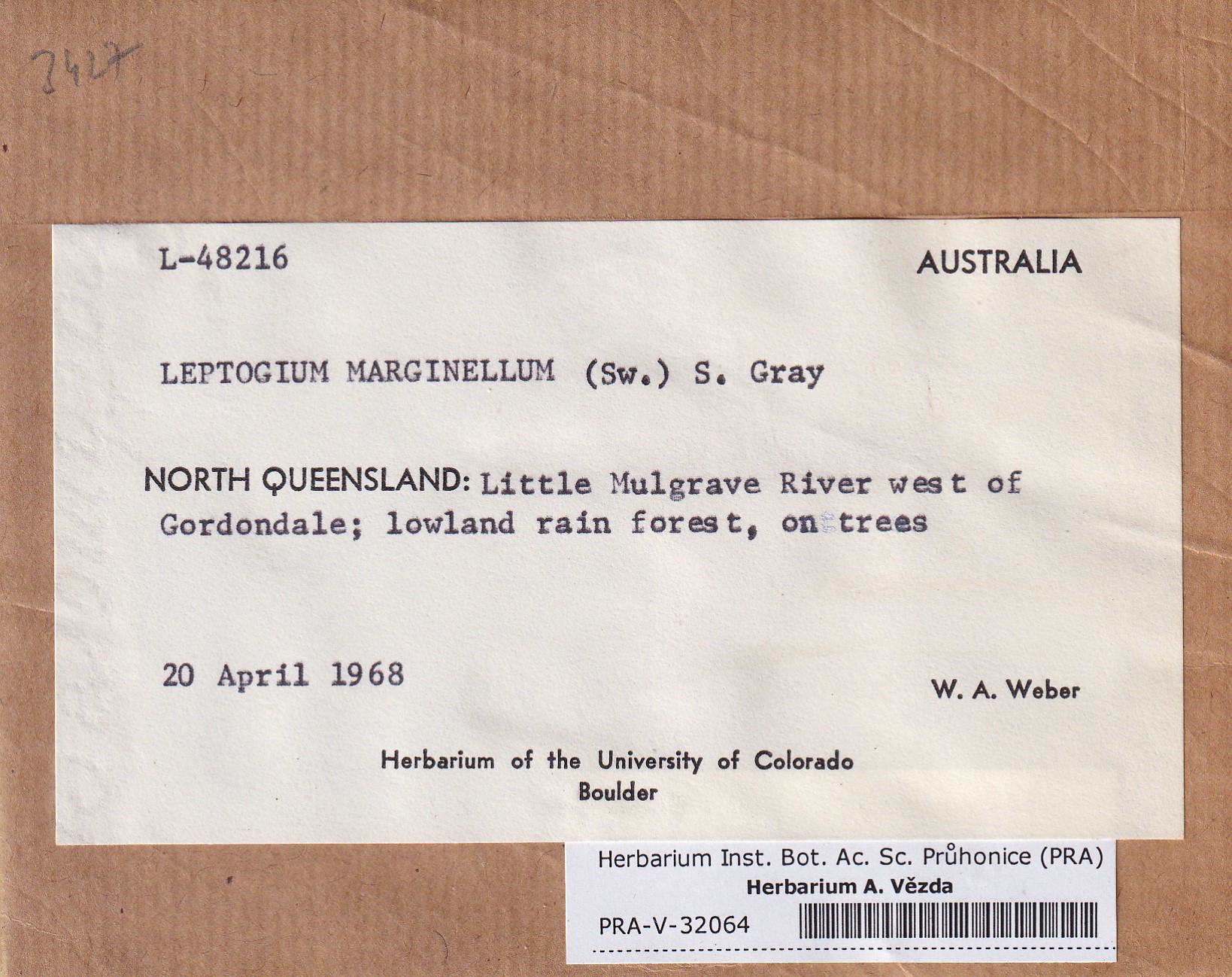 - Deposited in parcel no. 117 Leptogium A-N