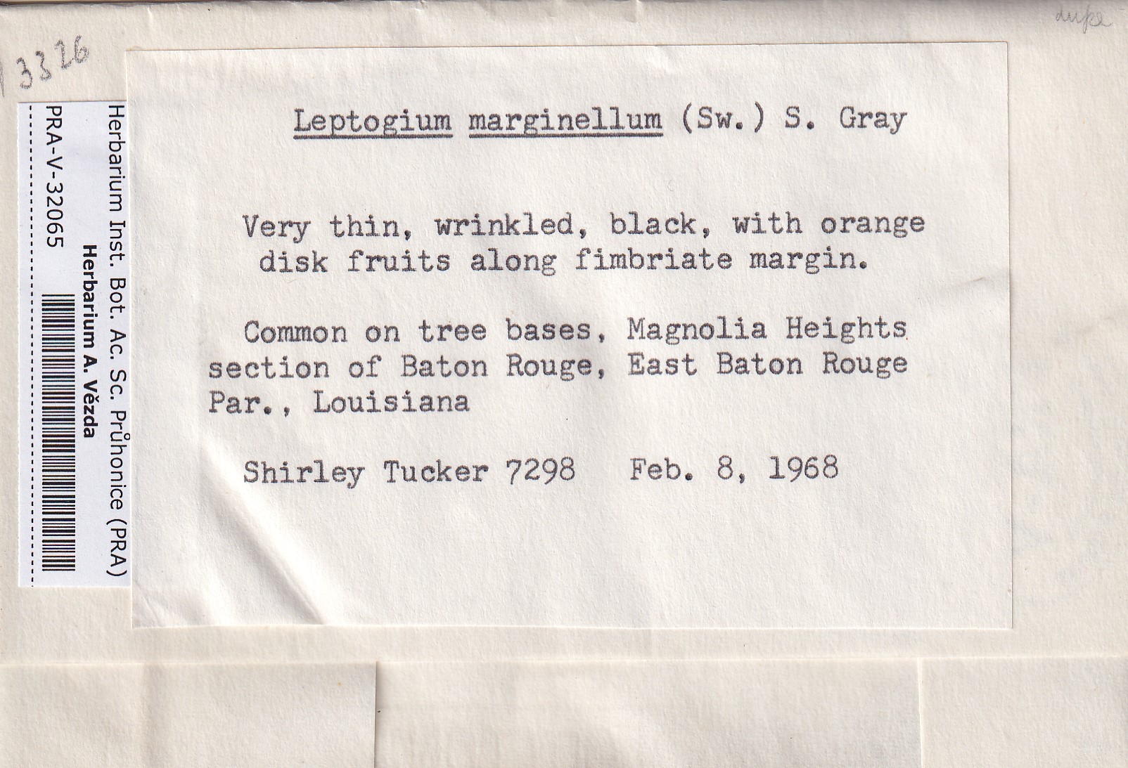 - Deposited in parcel no. 117 Leptogium A-N