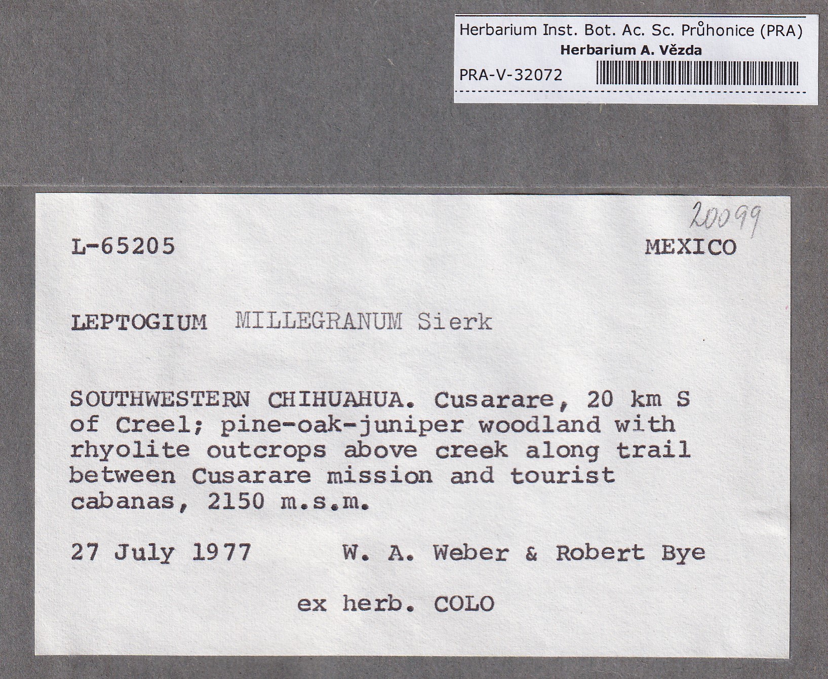 - Deposited in parcel no. 117 Leptogium A-N