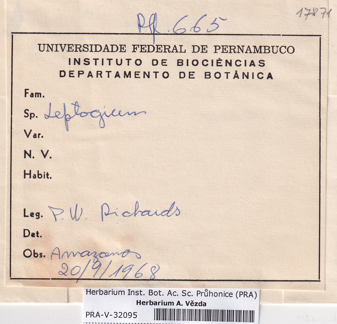 - Deposited in parcel no. 117 Leptogium A-N