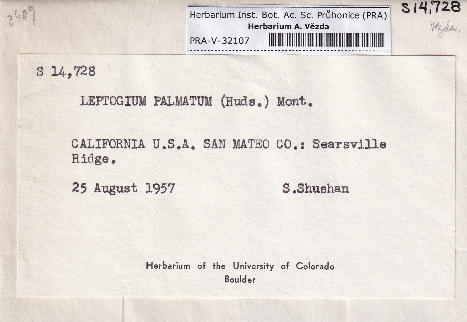 - Deposited in parcel no. 118 Leptogium O-Y