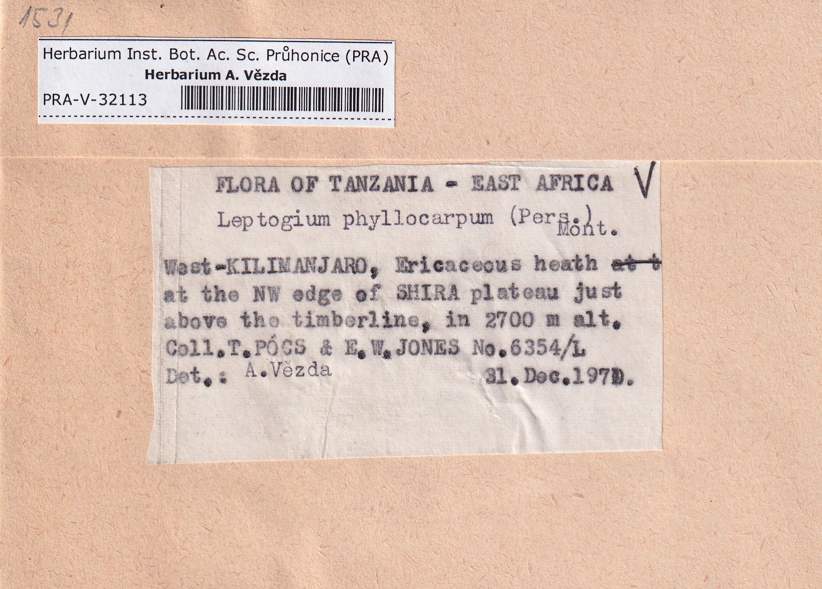 - Deposited in parcel no. 118 Leptogium O-Y